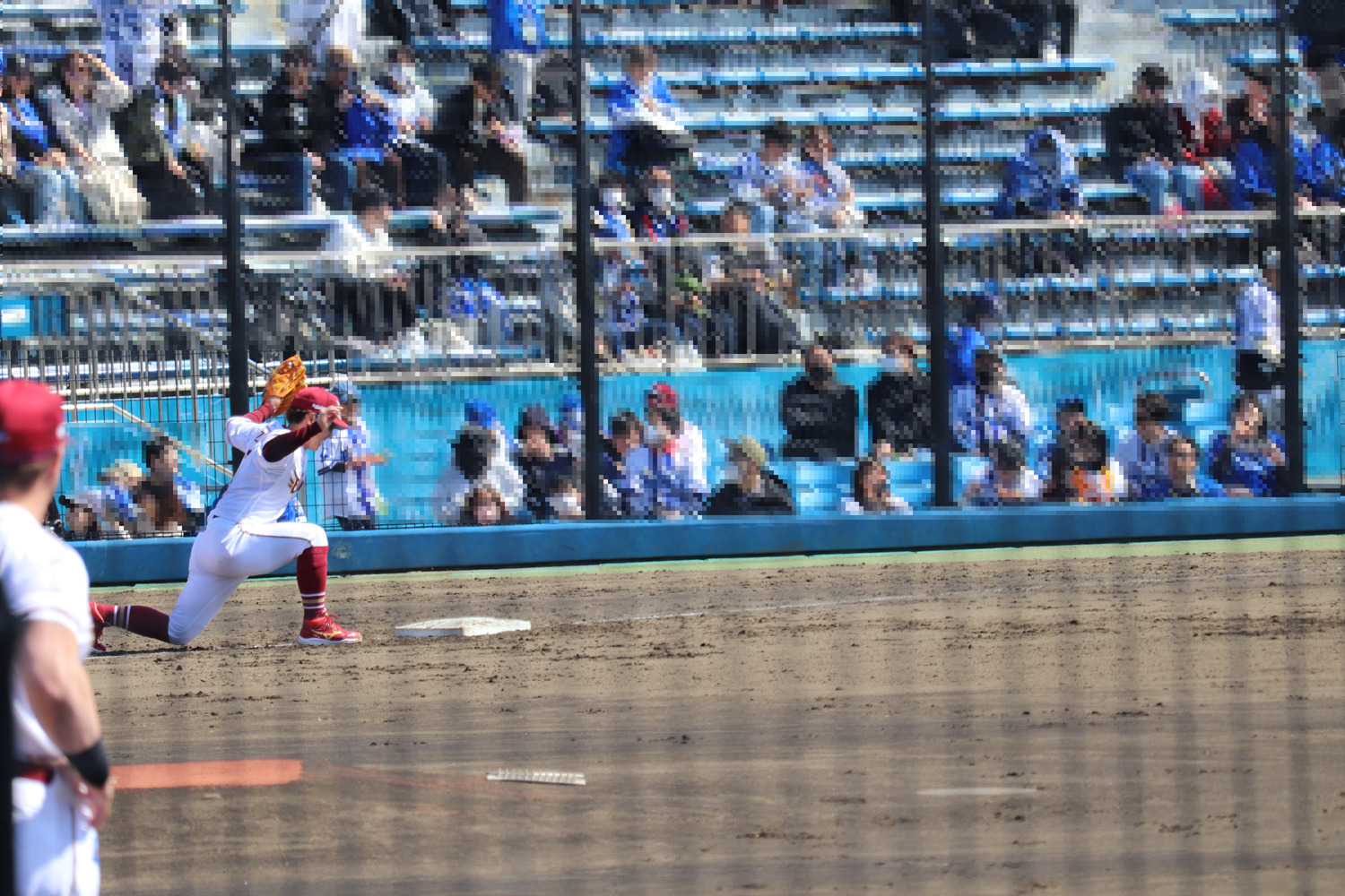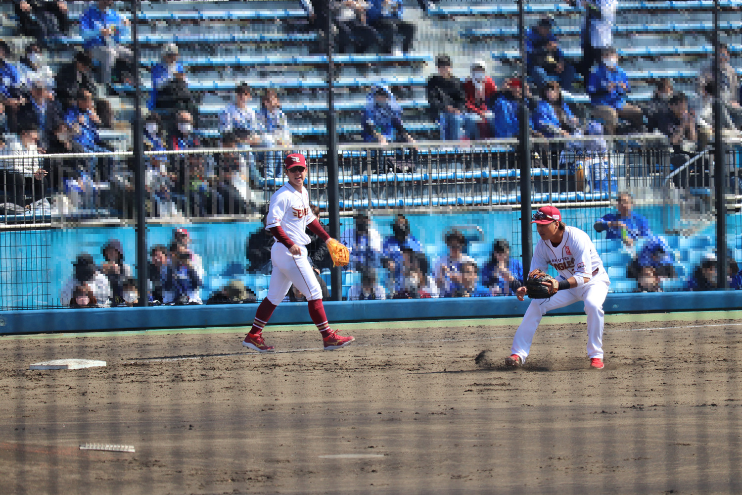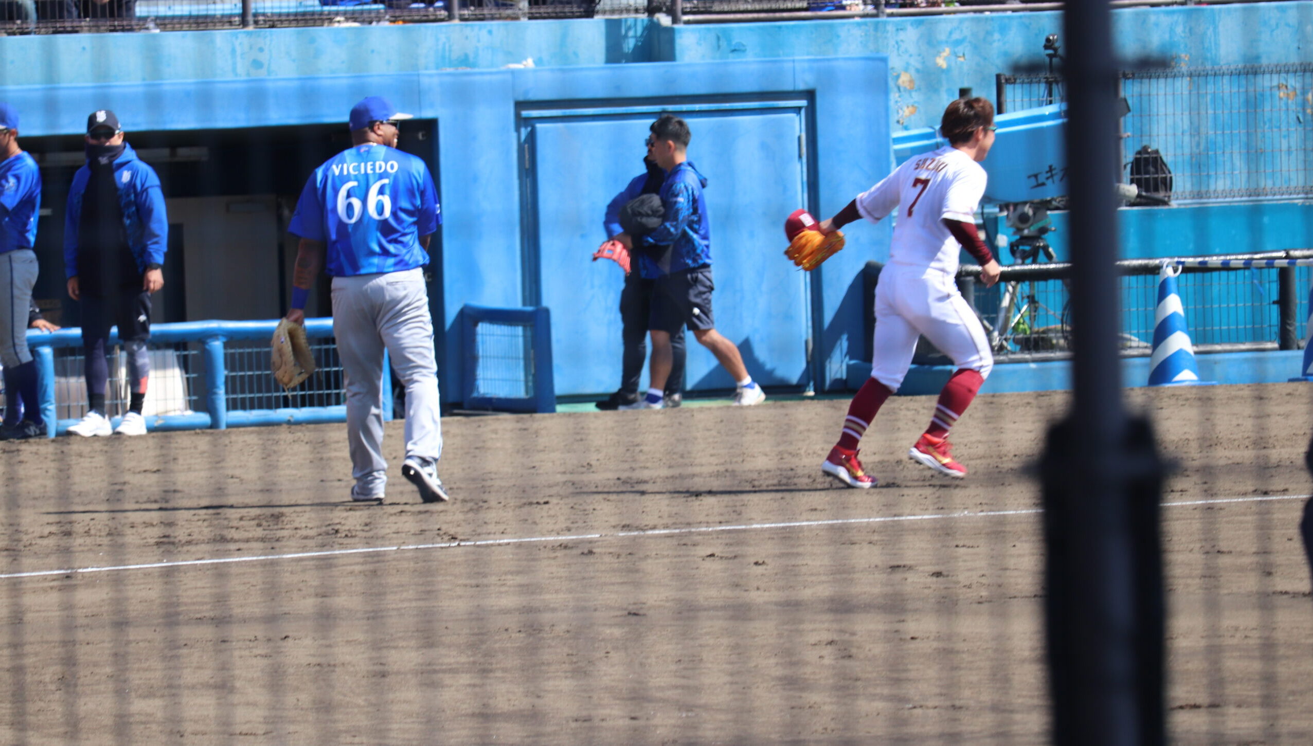 キャッチボールを終えて、ノックのためにサードに向かった鈴木大地選手。